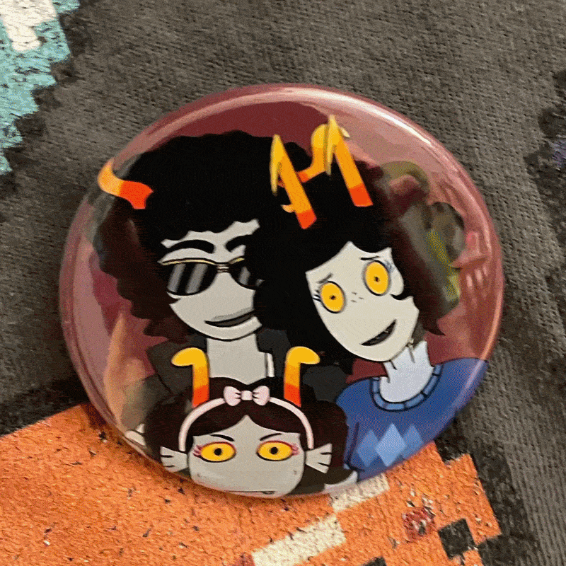 Yes, it does mean I blasted Homestuck in public (because the teacher played the class's animations on the projector), but it is fine because I have all these fun physical buttons of my fantrolls. It's free merch for me.
