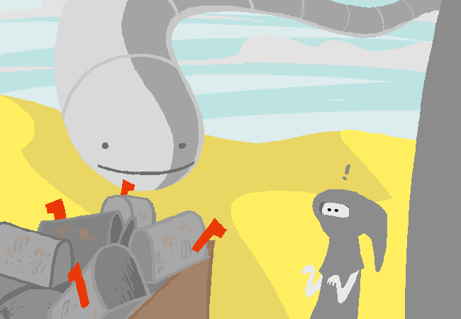A girl stands in her bedroom on her 26th birthday. As she waits for the mail-centipede to arrive, her fingers twiddle with her long grey beard. The beard twiddles back.