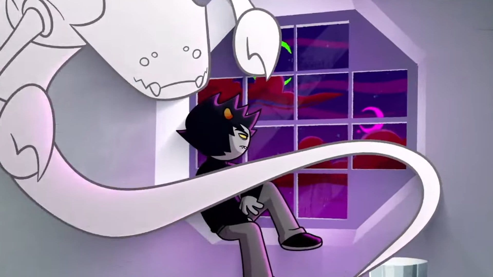 I speculated in another thread that the reason we don't see this room ever again is because it's actually one of the ones Terezi adds on to Karkat's hive over the course of the game, which fits with it being clearly post-entry and being empty + light grey. But I myself never thought of that until that post, so it's not really a surprise that the animators thought of it as an alt version of Karkat's respiteblock, and thus drew him "hanging out" in it on Alternia. But yeah lol