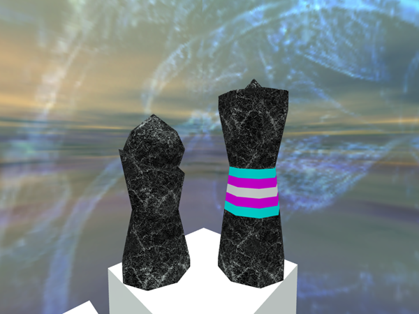 Looks like the TALL WHITE ROOK and the BLACK ADJUDICATOR are engrossed in an argument. The ADJUDICATOR is complaining that the TALL WHITE ROOK is breaking the rules, and the TALL WHITE ROOK is pointing out that there are no rules. The ADJUDICATOR rebuts that pieces being able to come back from the DEAD is not a rule of the game but a rule of reality. The ROOK doesn't really know what to say, it was able to get up here so obviously it can happen.