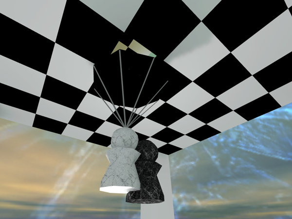 The DESCENDING BLACK PAWN says hey. The LEVITATING BLACK ROOK says sup.