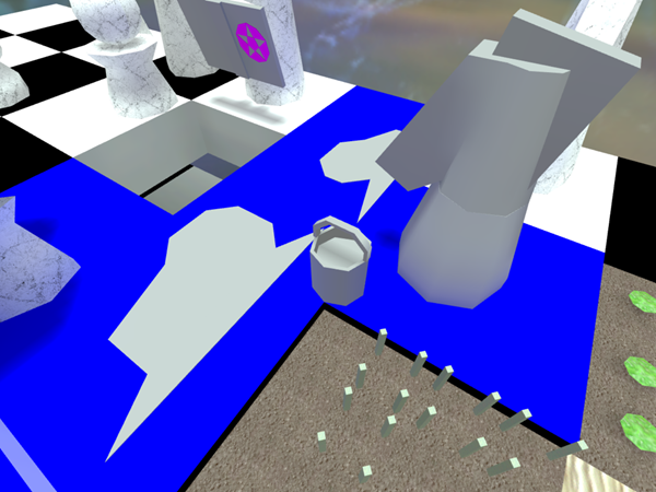 That's not water, it's BLUE PAINT applied by the WARLOCK'S APPRENTICE. Remember?