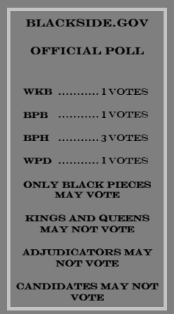The CANDIDATE BLACK PAWN only meant justice for all BLACK PAWNS. But, sure, couldn't hurt to have some muscle on its side. It welcomes the MEGAPAWN happily. The MEGAPAWN considers itself loyal to the BLACK PAWN H, because nobody else got to it first. If that's not a reason to trust someone, what is?