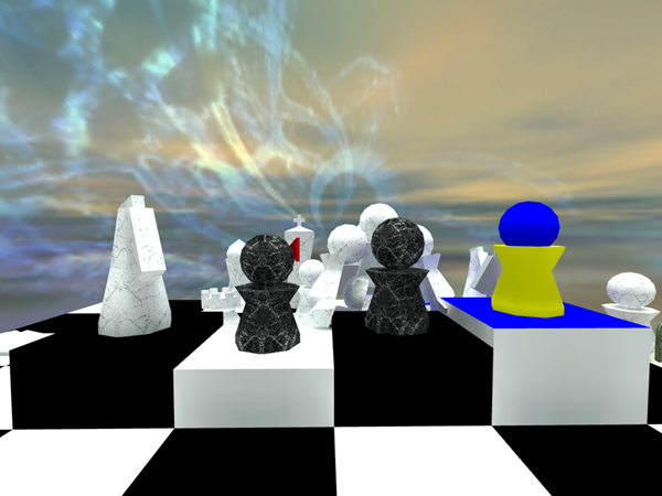 Floating in a strange, infinite void is a CHESSBOARD. Upon it are 32 pieces, 16 white and 16 black, arranged in standard formation. No moves have been made.