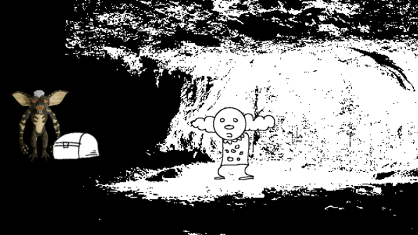 On 1 side you see a treasure chest, guarded by a gremlin, who seems less cute.