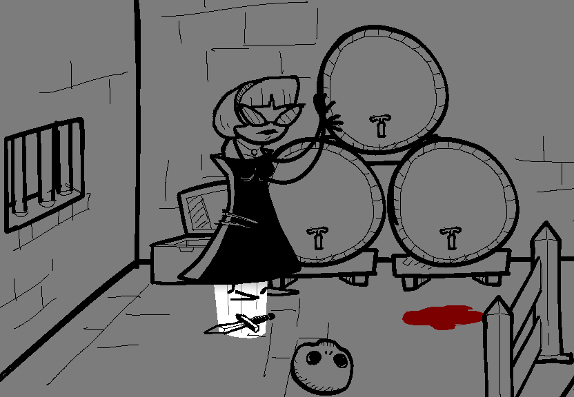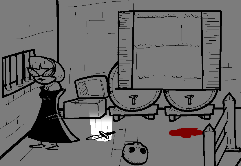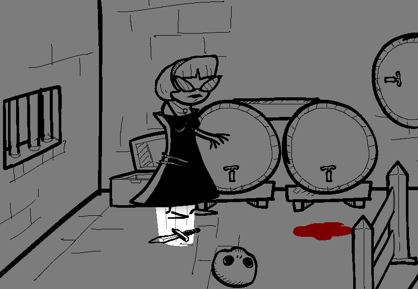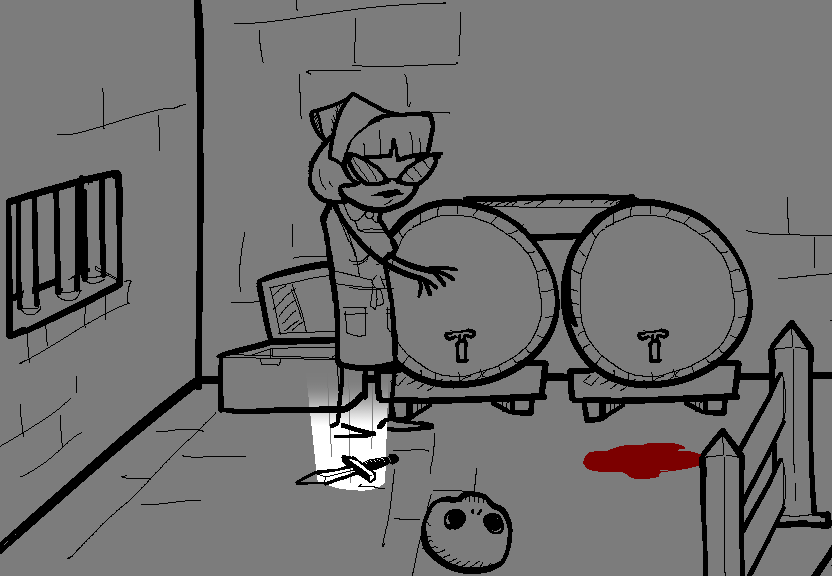 > Pick up the skull and knife so you don't lose them before the next bout of wacky hijinks