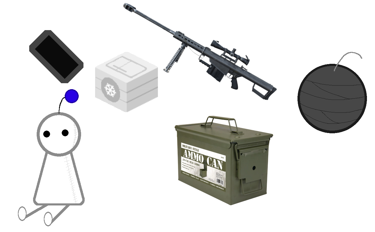 Inside you find an iPhone (1), Portable Cooler (1), Robert Plush (1), a Barrett M82 (1), an ammo can (1), and a Smoke Bomb (1)