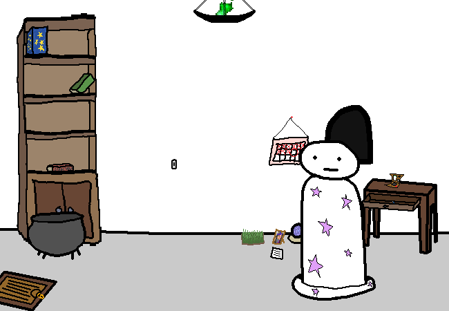 >APPRENTICE: Use the disk under your desk like a frisbee to knock that starry book down from the shelf.