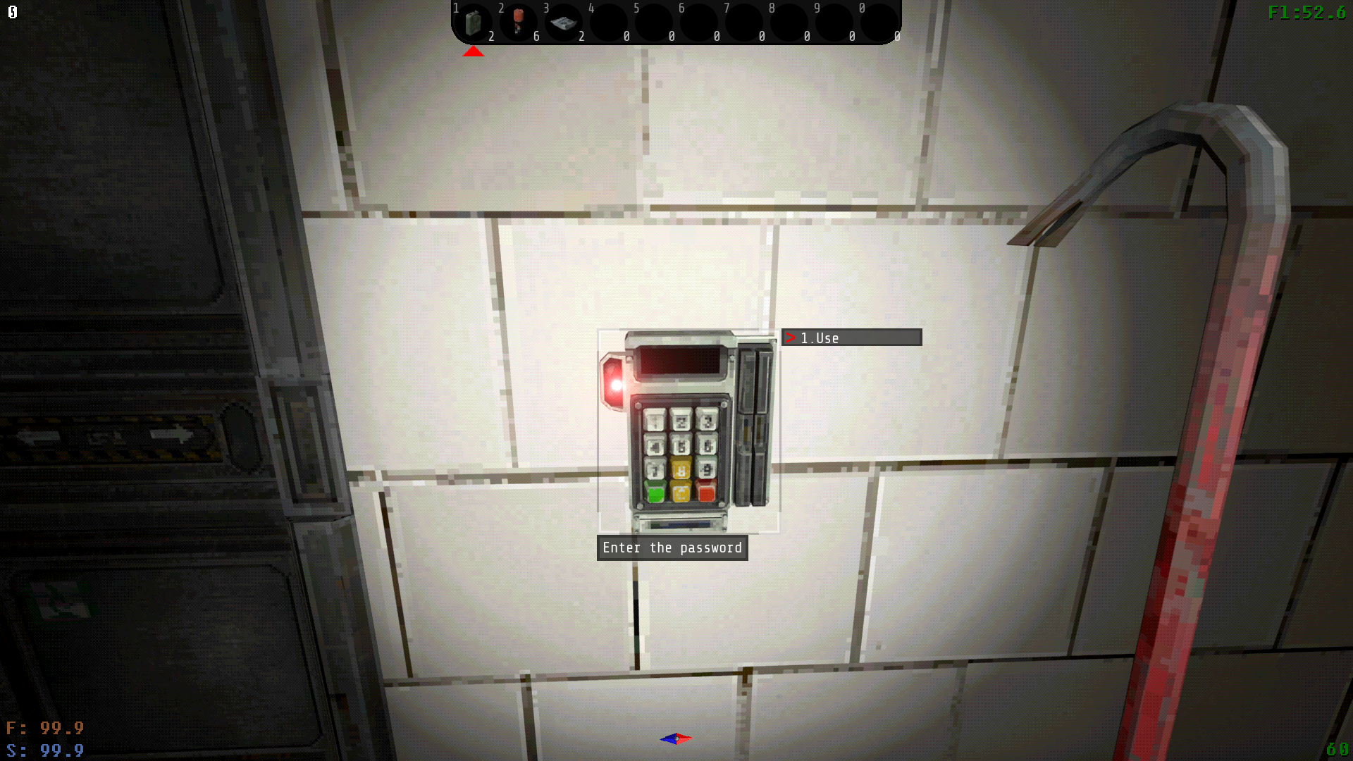The F and S in the bottom corner (I presume indicating Food and... Survival? Safety? Some kind of health meter) are near max, and I saw them reset back to 100 earlier. I don't think I can starve in the tutorial. But sure, I'll eat it.