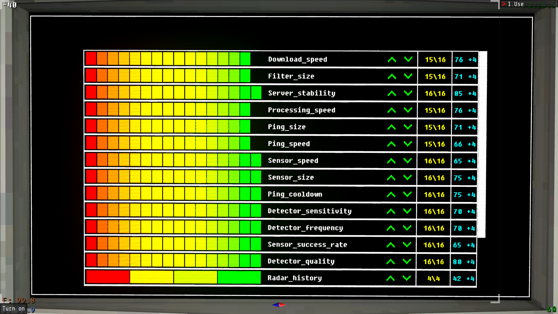 The computer is my upgrade menu. I dunno if it was intentional, but selecting the downgrade option for each menu cause it to jump up to full. I doubt it was an oversight, it strikes me more as tutorial convenience.